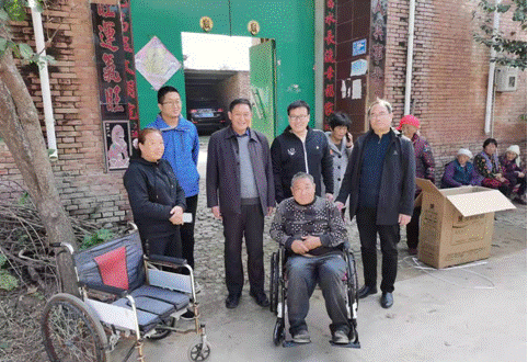 10月22日,公司党总支书记和副经理王锋为公司定点帮扶村濮阳县渠村乡刘闵城村残疾人刘红夺捐赠轮椅