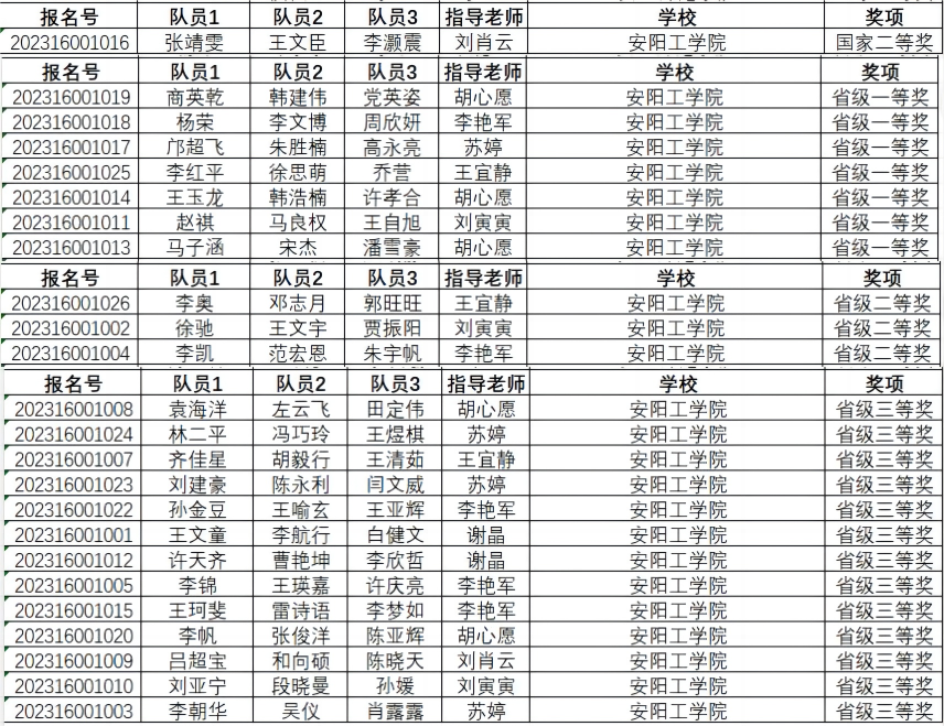 2023年高教社杯全国老员工数学建模竞赛获奖名单公布。公司27个参赛队经过奋勇拼搏,共有24个参赛队获奖,分别获得全国二等奖1个、河南赛区一等奖7个、河南赛区二等奖3个、河南赛区三等奖13个。