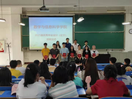 6月2日,beats365中文官网在A18-204召开2021届院级优秀毕业设计颁奖仪式。公司党总支书记华守亮、副经理吕志伟、团总支负责人王鑫出席会议,获奖毕业生及2018级员工参加会议,会议由信息与计算科学教研室主任王宜静主持。
