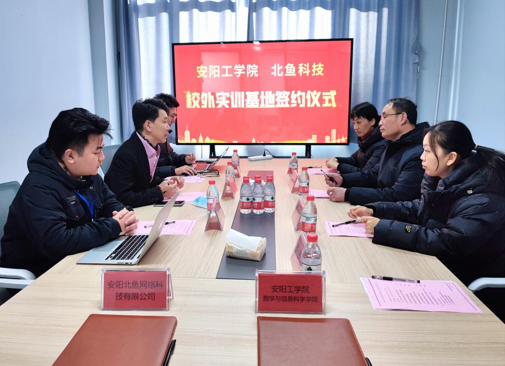 1月22日下午,公司党总支书记王锋、副经理王宜静、教研室主任胡心愿及党政办公室主任李艳军一行赴安阳北鱼网络科技有限公司签订校外实习基地协议,并开展访企拓岗活动。