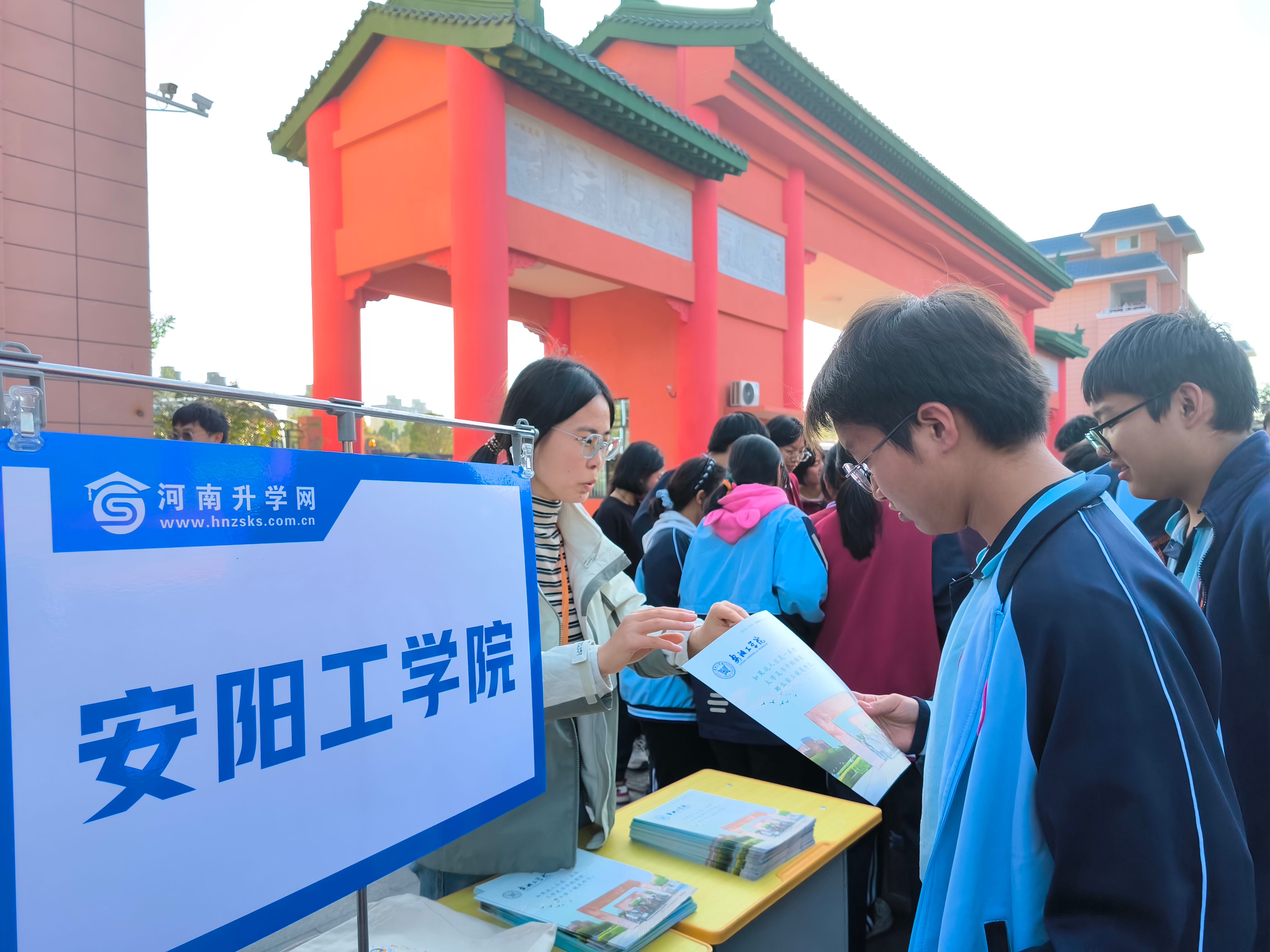 会议特别设置了“高校进高中”活动,参会高校教师前往西平县杨庄高级中学参观交流,开展招生宣传。在活动现场,公司两位老师就公司基本情况、办学特色及人才培养、专业特色、近年来录取情况等进行了详细介绍,一一解答同学们关心的问题,发放了beats365中文官网招生宣传手册,并与公司优质生源基地中学领导进行交流。