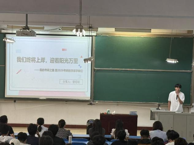 活动伊始,主持人聂春燕对到场的领导、老师和同学们表示热烈欢迎,并简要介绍了本次交流会的背景和意义。随后,主持人逐一介绍了七位优秀毕业生,他们依次登台,结合自身经历,从不同角度分享了他们的考研经验。