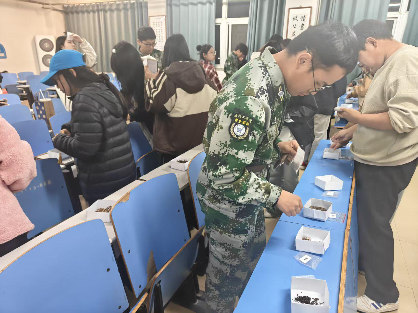 本次活动设置击鼓传花、香囊制作两大环节。击鼓传花游戏优胜者优先挑选心仪香囊袋,随后全体参与同学化身“手作达人”,沉浸式体验香囊制作的乐趣,亲手打造专属的非遗文创作品。活动现场氛围热烈融洽,同学们热情高涨、沉浸其中。