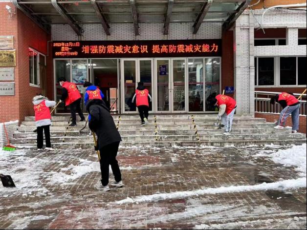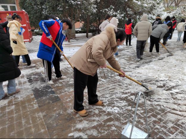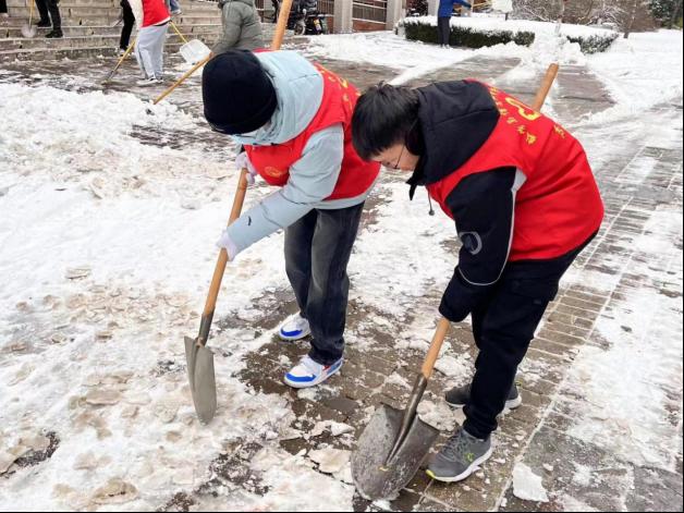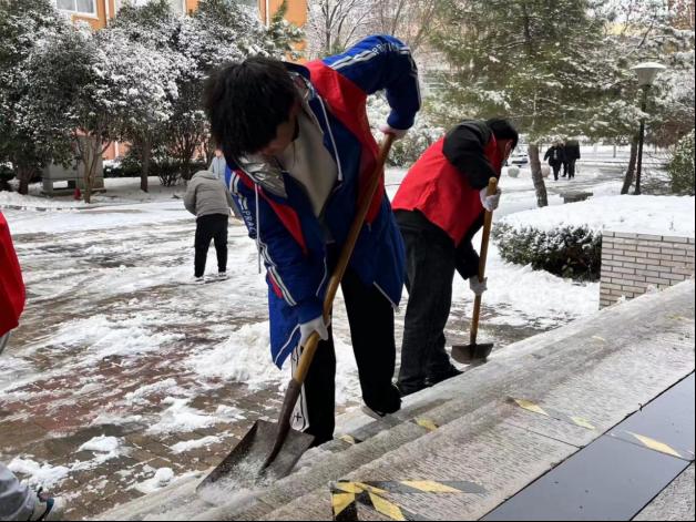 此次扫雪除冰志愿活动,极大减少了师生滑倒摔伤事件的发生,为寒冷的冬日带来一份暖意。